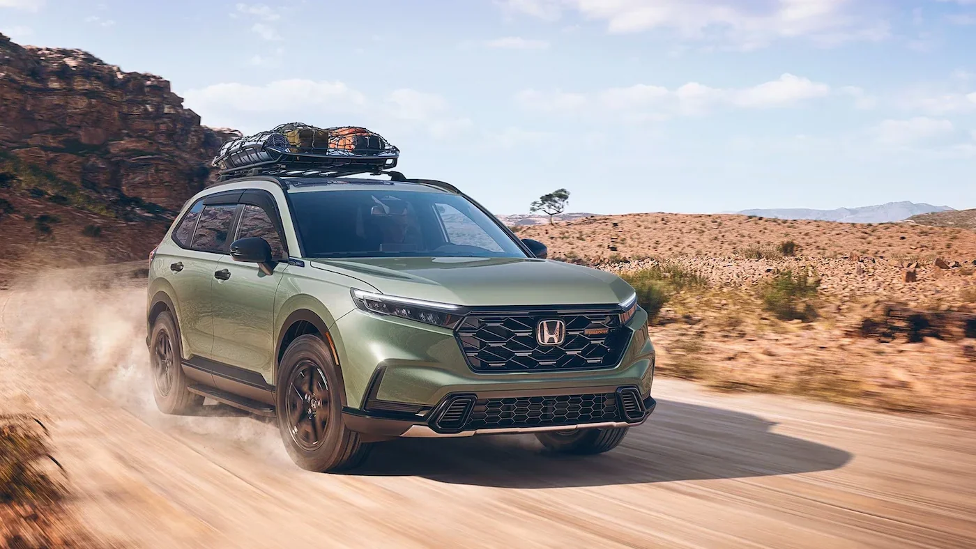 The Honda CR-V has a sleek design, a spacious interior, a modern infotainment system, and comfortable seating for five people. It includes 3 years and 36,000 miles of roadside assistance. You'll also get keyless ignition. The CR-V provides 190 horsepower and 179 pound-feet of torque, and it has a variable-speed automatic transmission. A 2.0L hybrid version that gives 204 horsepower and 247 pound-feet of torque is optional.